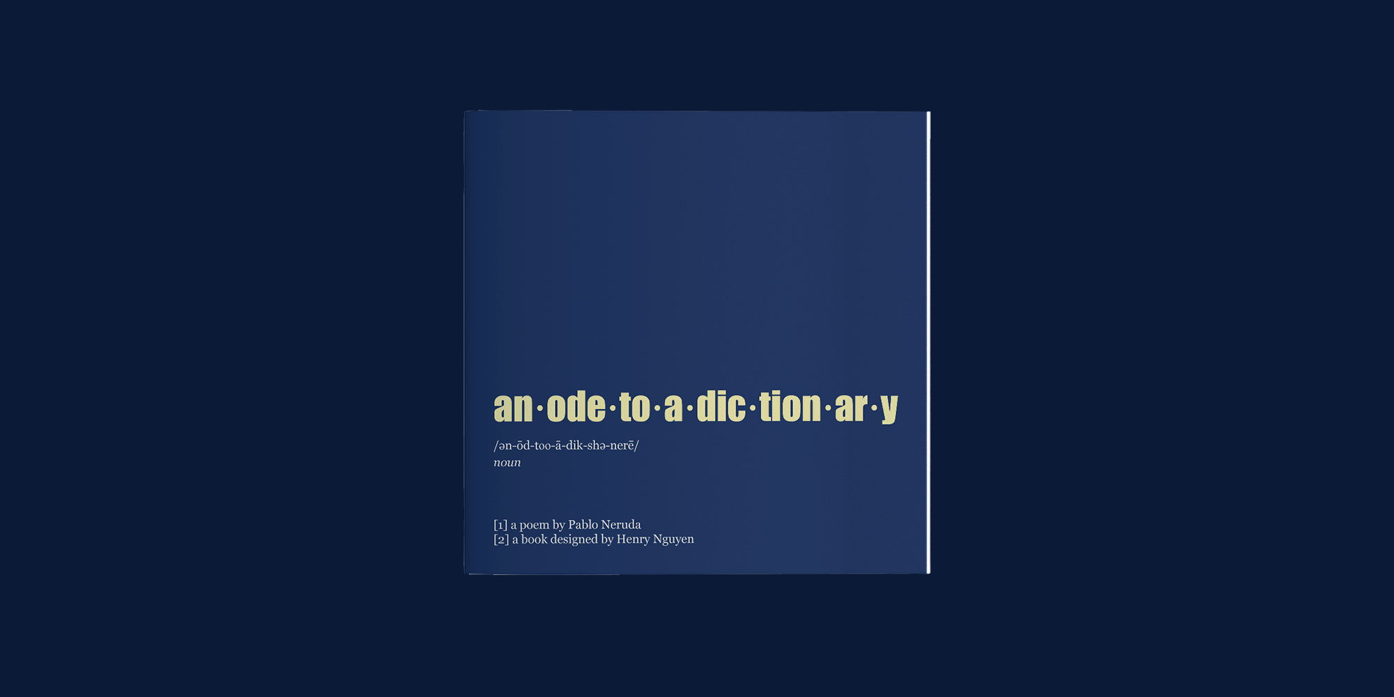 The design was based on the Vietnamese-to-English dictionary my mother utilized as an immigrant fresh off the coasts of Vietnam. Today, I utilize the same dictionary to visualize the poem through the manipulation of typography and unrefined imagery.